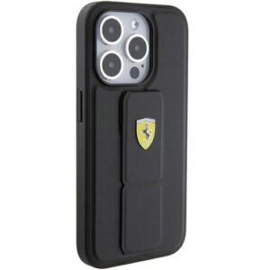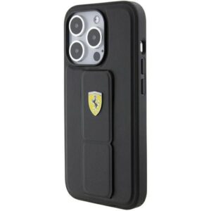 Back panel cover Ferrari Ferrari Grip Stand Metal Logo case for iPhone 15 Pro Max – black