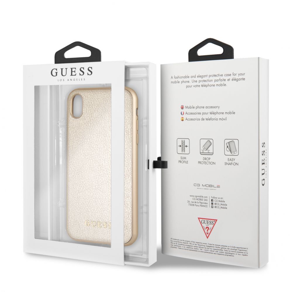 Back panel cover Guess Apple iPhone XR Iridescent PU Leather Hard Case Gold