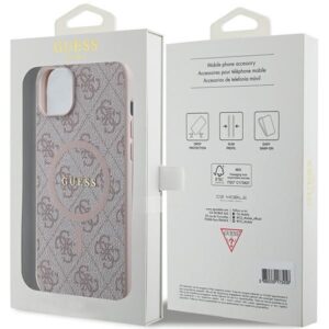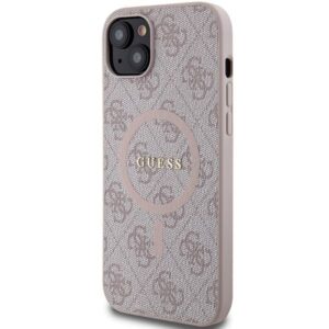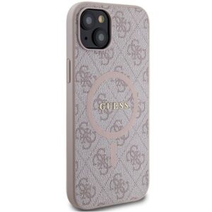 Back panel cover Guess Guess 4G Collection Leather Metal Logo MagSafe Case for iPhone 14/15/13 – Pink