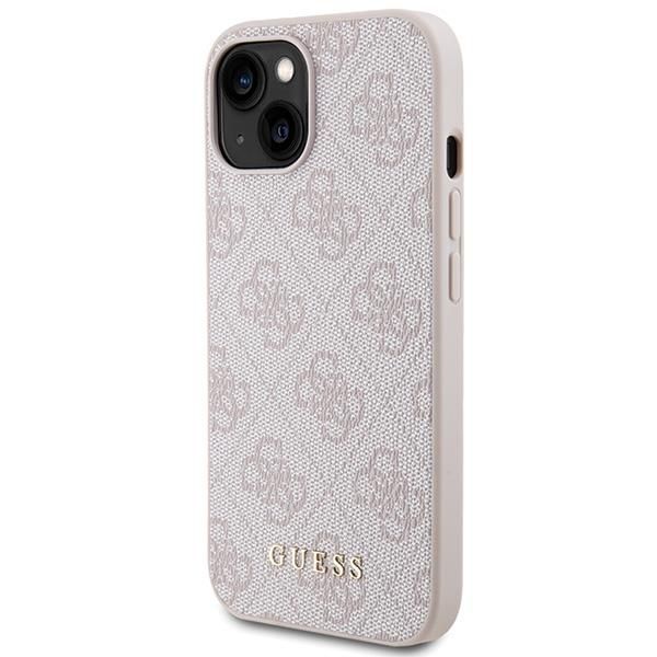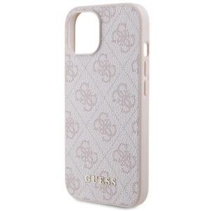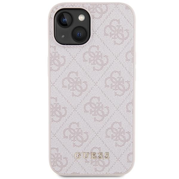 Back panel cover Guess Guess 4G Metal Gold Logo case for iPhone 15 – pink