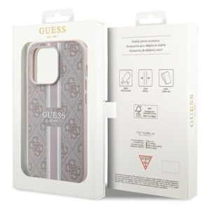 Back panel cover Guess Guess 4G Printed Stripes MagSafe case for iPhone 15 Pro – pink