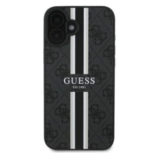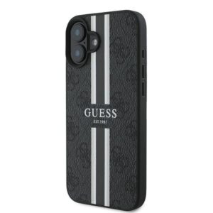 Back panel cover Guess Guess 4G Printed Stripes MagSafe case for iPhone 16 Plus – black