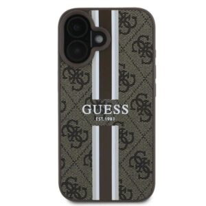 Back panel cover Guess Guess 4G Printed Stripes MagSafe iPhone 16 Plus Case – Brown
