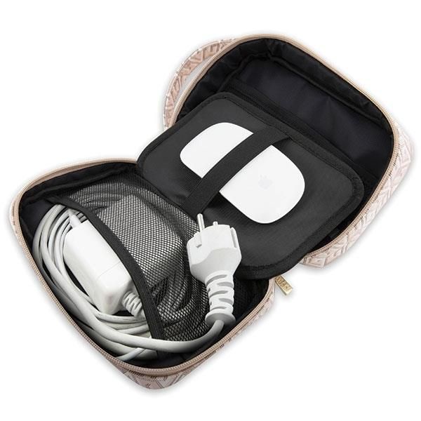The interior of the bag is extremely functional – numerous compartments allow you to conveniently store the necessary small accessories. The bag has an external port terminated with a USB connector, and the inside of the bag hides a cable terminated with a USB connector.