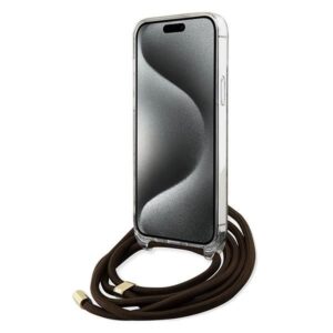 Back panel cover Guess Guess Crossbody Cord 4G Print case for iPhone 15 / 14 / 13 – brown