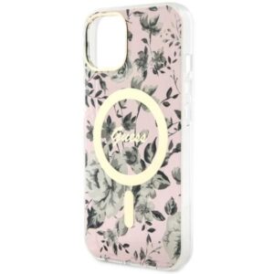 Back panel cover Guess Guess Flower MagSafe case for iPhone 14 – pink
