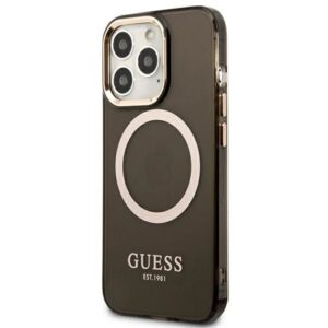 Back panel cover Guess Guess Gold Outline Translucent MagSafe Case for iPhone 13 Pro / iPhone 13 – Black