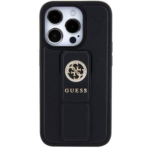 Back panel cover Guess Guess Grip Stand 4G Saffiano Strass case for iPhone 15 Pro Max – black