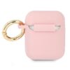 Guess Silicone Cover. The silicone case protects the Apple AirPods wireless headphones dock from surface damage and possible loss. The high-quality silicone case fits perfectly with the original AirPods case and is extremely pleasant to the touch. The whole thing is complemented by the distinctive gold Guess logo that makes the case look elegant. On the side of the case there is a practical golden ring that allows you to attach the case to a leash, for example.