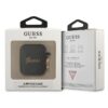 Guess Silicone Cover. The silicone case protects the Apple AirPods wireless headphones dock from surface damage and possible loss. The high-quality silicone case fits perfectly with the original AirPods case and is extremely pleasant to the touch. The whole thing is complemented by the distinctive gold Guess logo that makes the case look elegant. On the side of the case there is a practical golden ring that allows you to attach the case to a leash, for example.