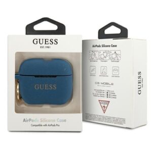 Guess Silicone Cover. The silicone case protects the Apple AirPods Pro wireless headphone dock from surface damage and possible loss. The high-quality silicone case fits perfectly with the original AirPods Pro case and is extremely pleasant to the touch. On the side of the case there is a practical golden ring that allows you to attach the case to a leash, for example.