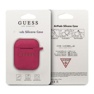 Guess Silicone Cover. The silicone case protects the Apple AirPods Wireless Headphone Dock from surface damage and possible loss. The high-quality silicone case fits perfectly with the original AirPods case and is extremely pleasant to the touch. On the side of the case there is a practical, gold ring that allows you to attach the case to a lanyard, for example.