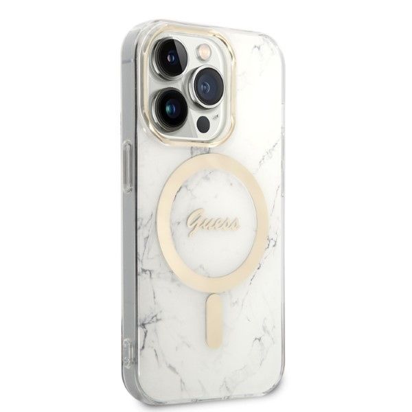 Back panel cover Guess Guess GUBPP14LHMEACSH Case+ Charger Set iPhone 14 Pro 6.1" white/white hard case Marble MagSafe