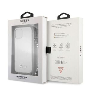 Case designed as a unique alternative to ordinary mobile phone cases, as well as to give a unique, original look. A product of a reputable company of exceptionally high quality, made of strong and durable polycarbonate. A transparent case with the printed Guess logo will emphasize the prestige of your device. The whole is complemented by a practical belt, which is a combination of elegant ecological leather with a metal chain, giving an additional chic.