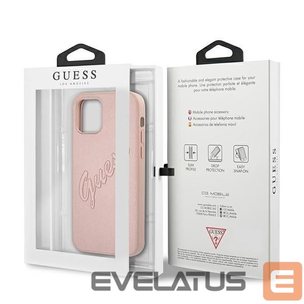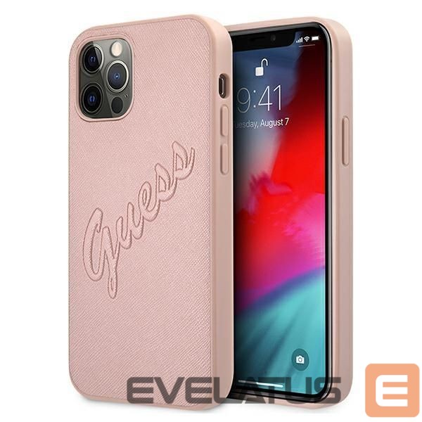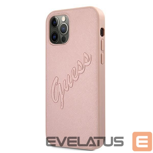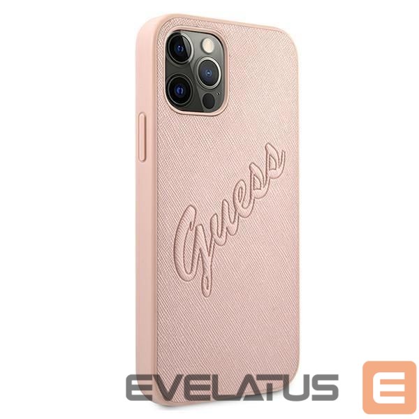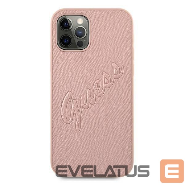 Back panel cover Guess Guess GUHCP12MRSAVSRG iPhone 12/12 Pro 6.1" pink/pink hardcase Saffiano Vintage Script