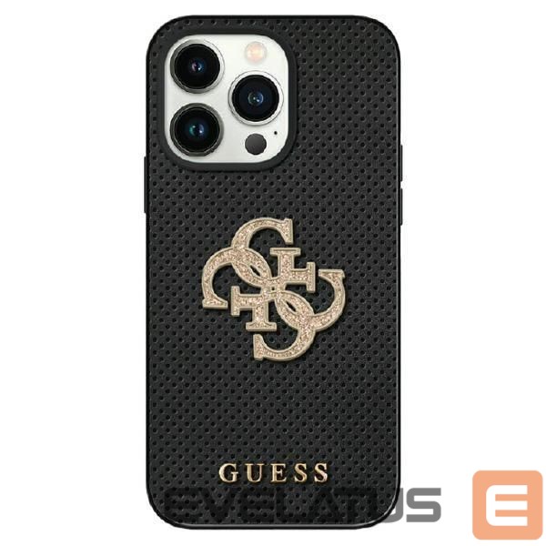 Back panel cover Guess Guess Leather Perforated 4G Glitter Logo case for iPhone 15 – black
