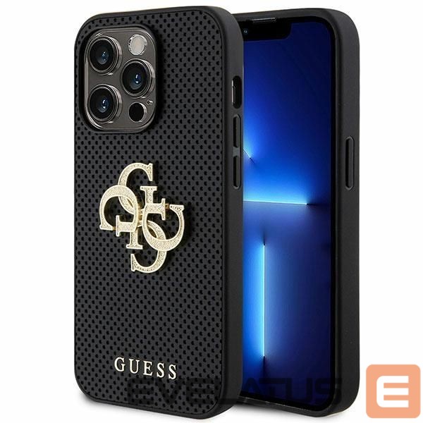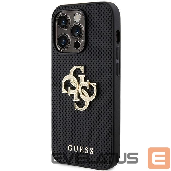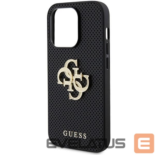 Back panel cover Guess Guess Leather Perforated 4G Glitter Logo Case for iPhone 15 Pro – Black