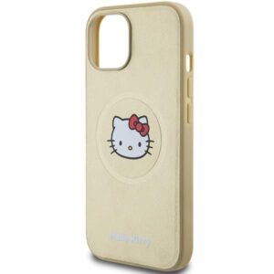 Back panel cover Hello Kitty Hello Kitty Leather Kitty Head MagSafe case for iPhone 15 – gold