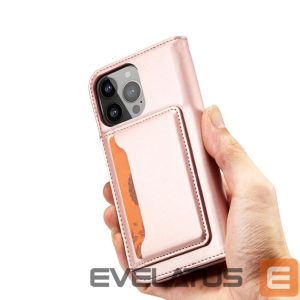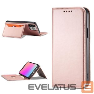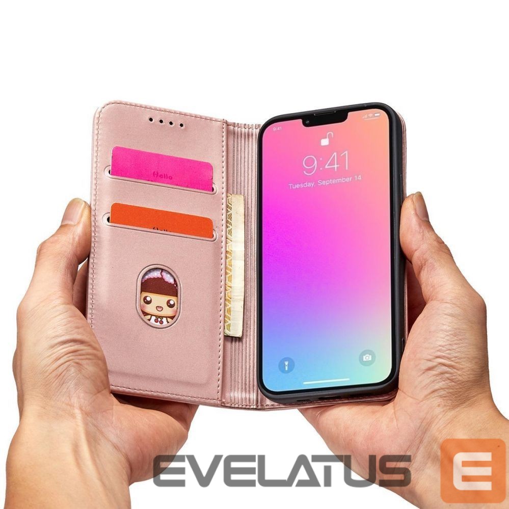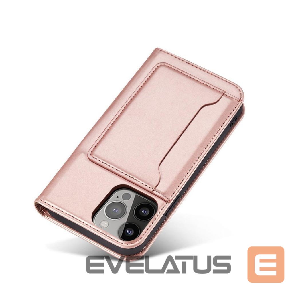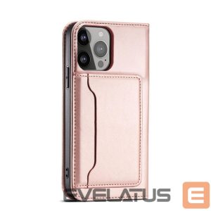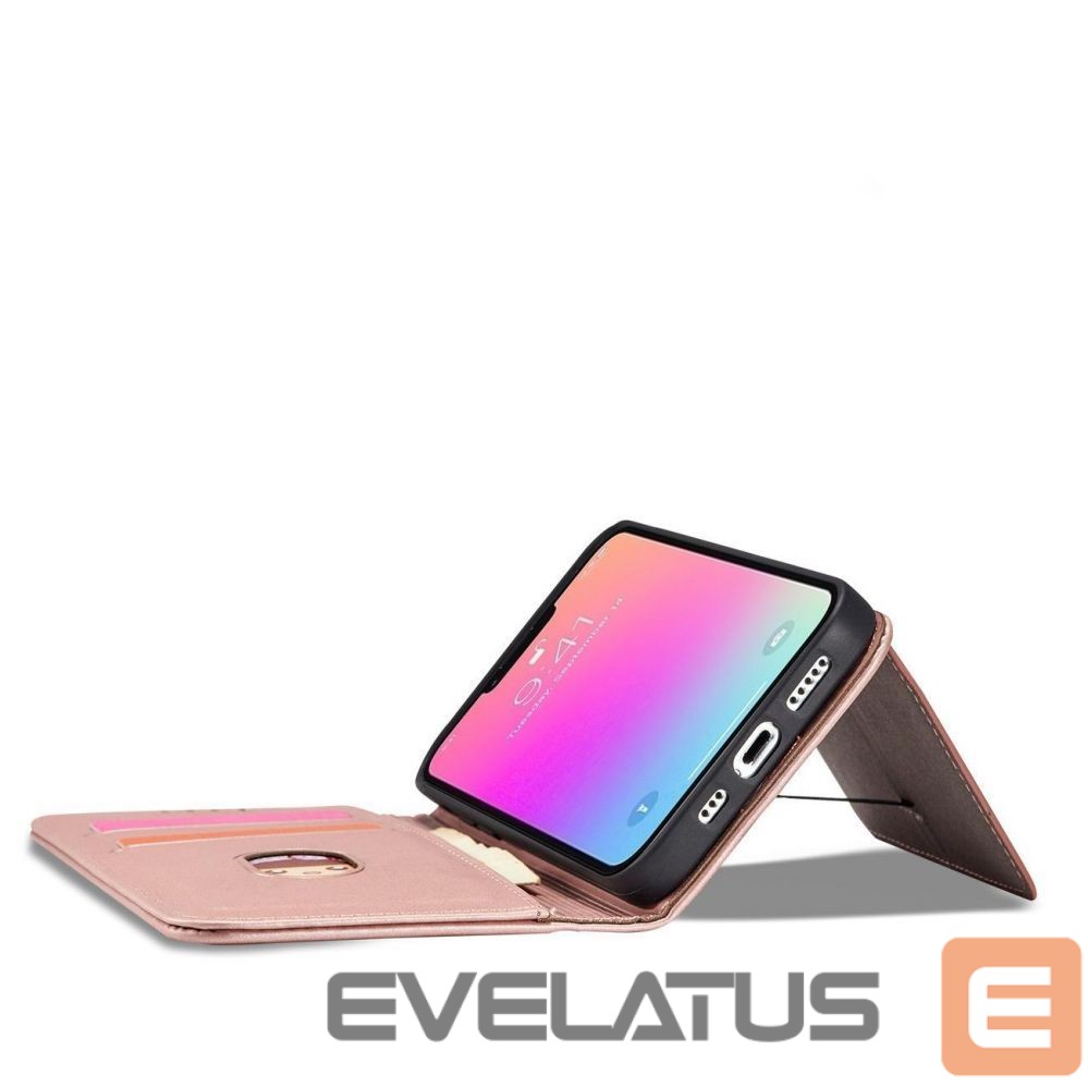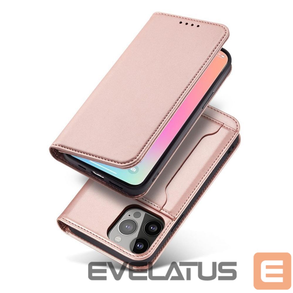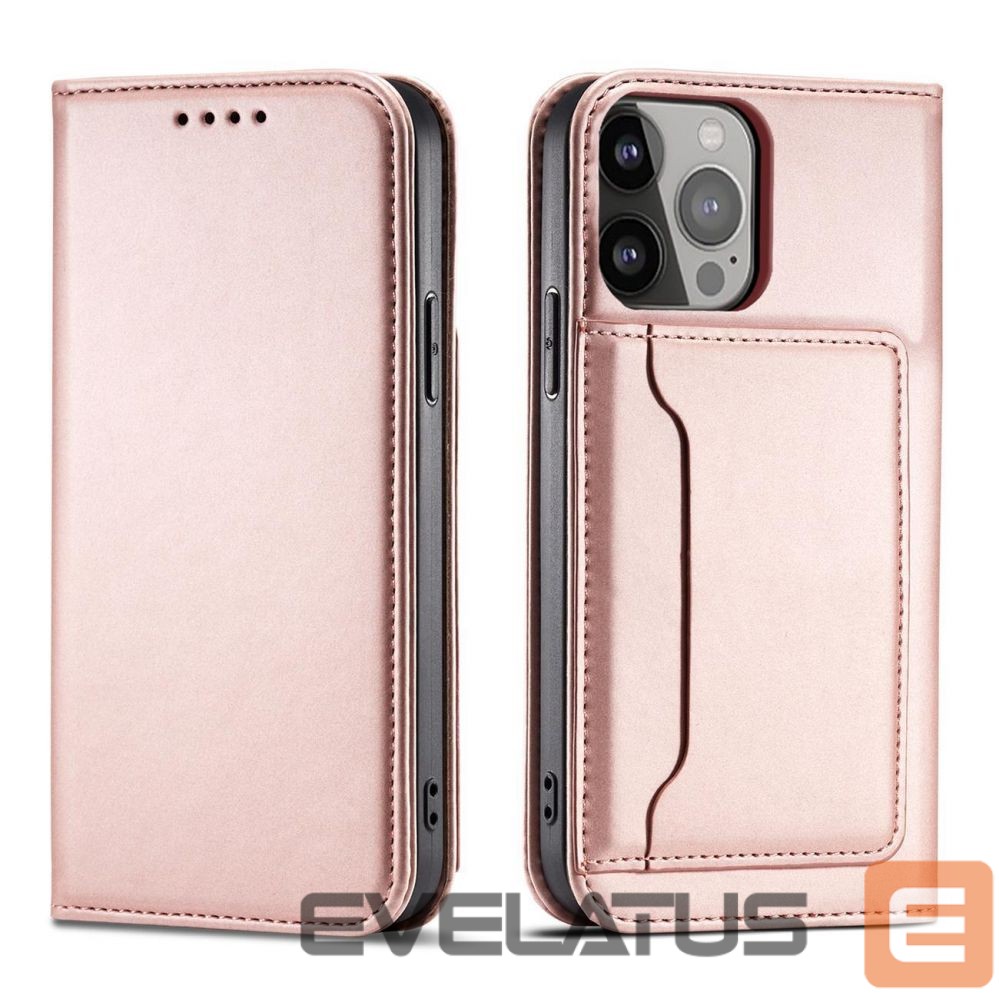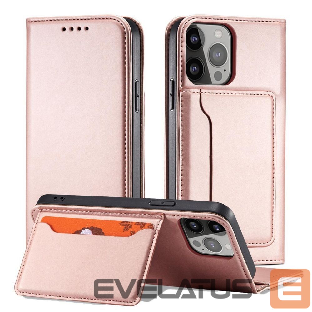 iPhone 14 Plus series Magnet Card Case case with a flip cover with a wallet function and a stand in pink