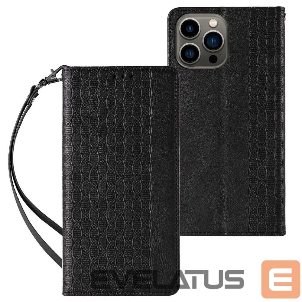 iPhone 14 Plus Series Magnet Strap Case Flip cover with wallet and stand function in black
