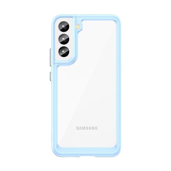 Armored Samsung Galaxy S23+ case from the Outer Space Case series with a blue gel frame