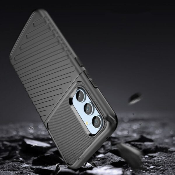 The Thunder Case series is made of thermoplastic and durable material, which provides it with good flexibility . The cover is tailored to the Samsung Galaxy A54 5G and perfectly protects the phone against damage caused by falls or scratches (for example by keys carried in a pocket). Raised edges around the screen and rear camera protect the phone from scratching these elements when it is placed on a flat surface. It has responsive buttons and port cutouts. Perfect for people who value style, quality and want to take care of their device.