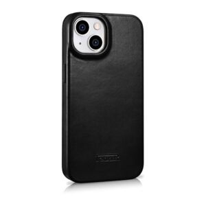 Back panel cover iCarer iCarer CE Oil Wax Premium Leather Folio Case Leather Case iPhone 14 Plus Magnetic Flip MagSafe Black (AKI14220707-BK)