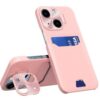 Back panel cover iLike Apple iPhone 14 Leather Stand Case cover card wallet with stand Pink
