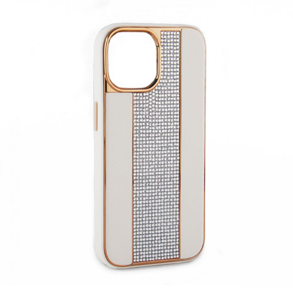 Back panel cover iLike Apple iPhone 15 Pro Diamonds and Leather Case White