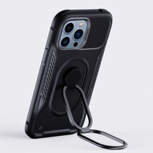 Armored case for iPhone 14 Pro by Joyroom from the Dual Hinge series with a built-in handle / ring holder stand in black
