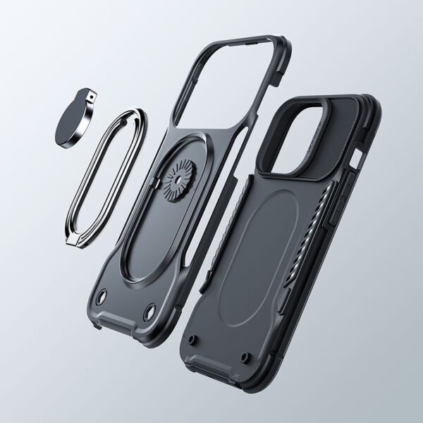 One of the most important advantages of this case is its futuristic, military look. Raised edges around the screen and camera provide extra protection for your phone. But that's not all – Joyroom Dual Hinge also has a built-in swivel and foldable ring holder. This holder greatly facilitates and improves the holding of the phone in the hand, and also allows you to rest it vertically or horizontally, which is ideal, for example, when watching movies or using applications. It is an ideal solution for people who appreciate the stylish look and comfort of using their phone.