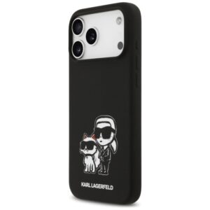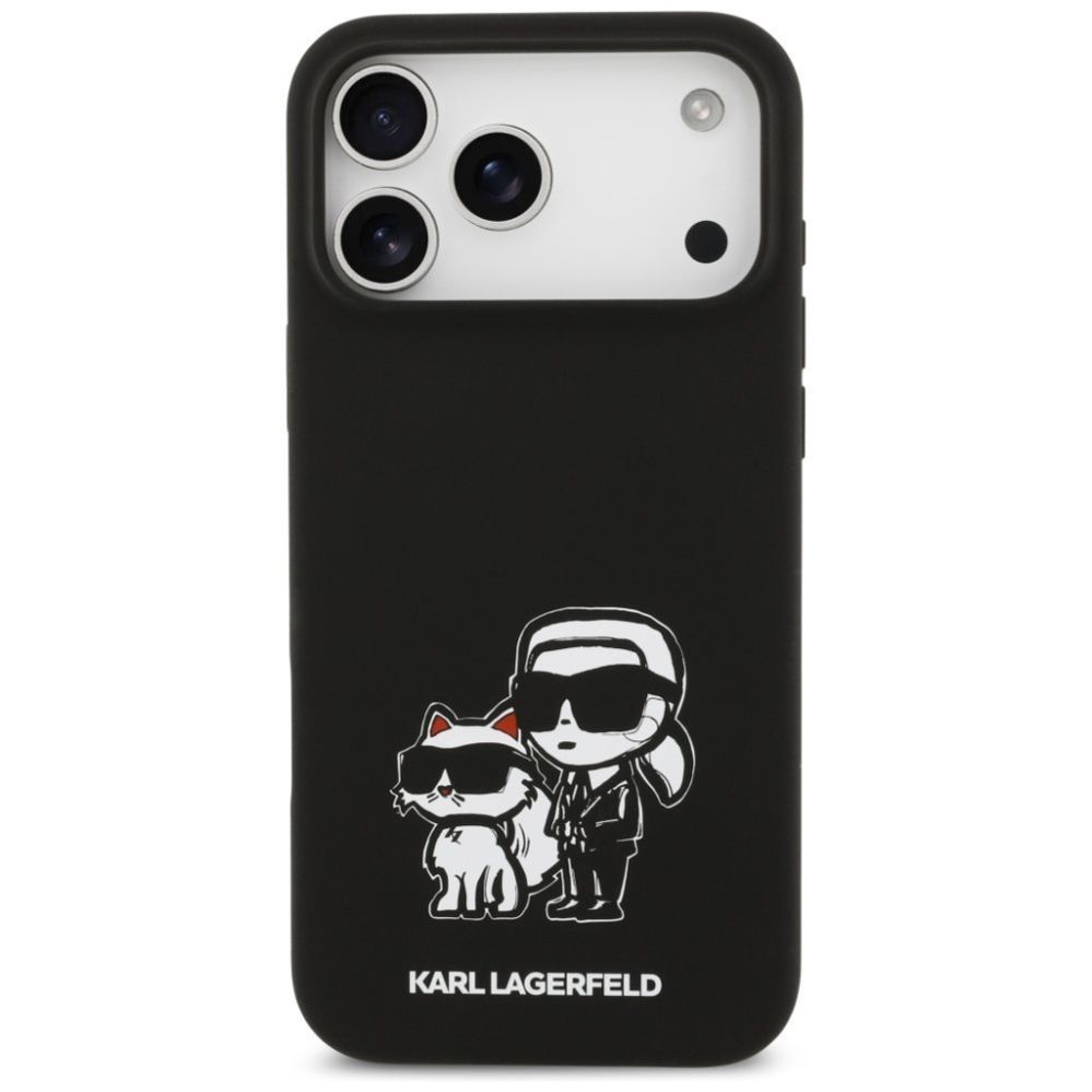 Back panel cover Karl Lagerfeld Apple IPhone 17 Pro Max Liquid Silicone Karl and Choupette Sketch MagSafe Case Black