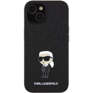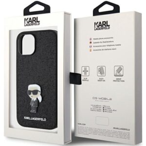 Back panel cover Karl Lagerfeld Karl Lagerfeld Fixed Glitter Ikonik Logo Metal Pin case for iPhone 15 – black