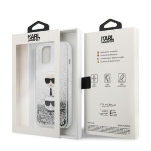 Back panel cover Karl Lagerfeld Karl Lagerfeld KLHCP13SKICGLS iPhone 13 mini 5,4″ srebrny/silver hardcase Liquid Glitter Karl&Choupette Head