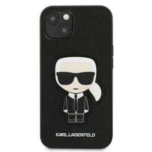 Back panel cover Karl Lagerfeld Karl Lagerfeld KLHCP13SOKPK iPhone 13 mini 5,4″ czarny/black hardcase Saffiano Ikonik Karl`s Patch