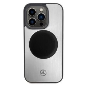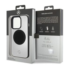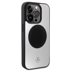 Back panel cover Mercedes-Benz Mercedes Leather&Alu MagSafe case for iPhone 15 Pro – silver