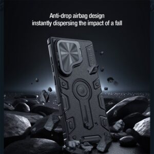 The combination of hard PC material with a soft TPU frame makes the Nillkin CamShield Armor Prop case not only easy to install, but also effectively protects the phone against damage.
