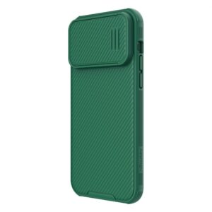 Armored iPhone 14 Pro Max case from the Nillkin CamShield S Case series with a green camera cover