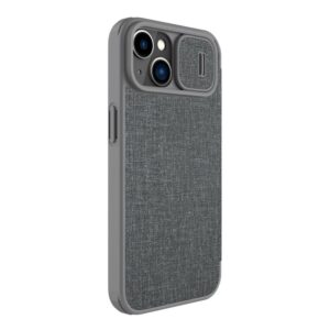 Back panel cover Nillkin Nillkin Qin Cloth Pro Case Case for iPhone 14 Plus Camera Cover Holster Cover Flip Case Gray