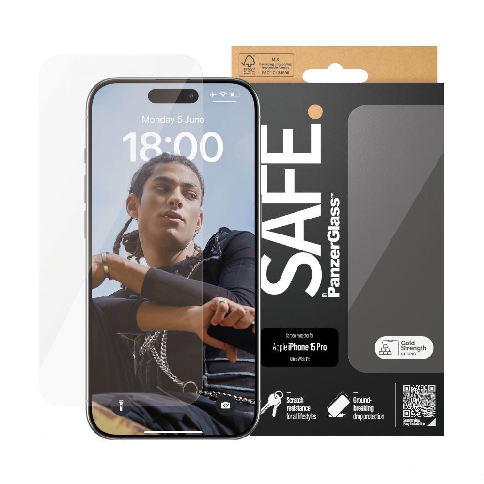 Back panel cover PanzerGlass – SAFE. Screen Protector Iphone15 PRO Ultra-Wide Fit
