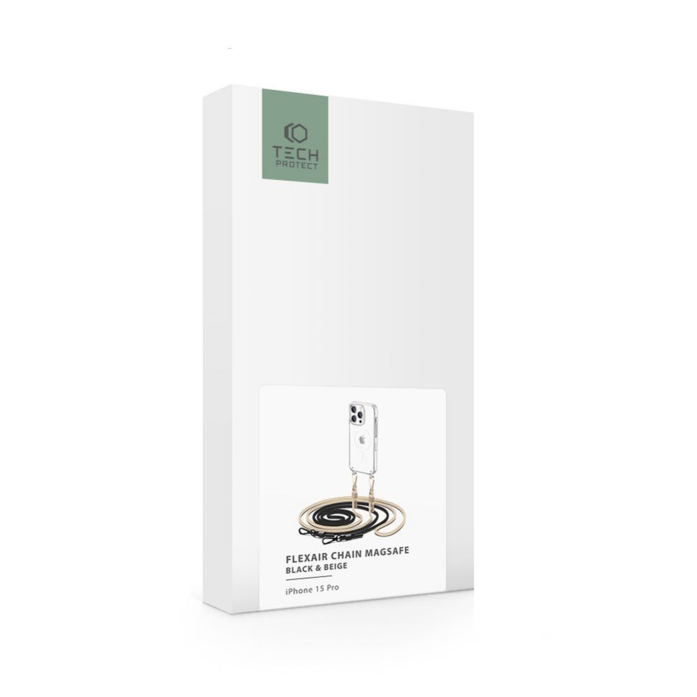 Back panel cover Tech-Protect Tech-Protect FlexAir Chain Case with MagSafe for iPhone 15 Pro – Black/Beige