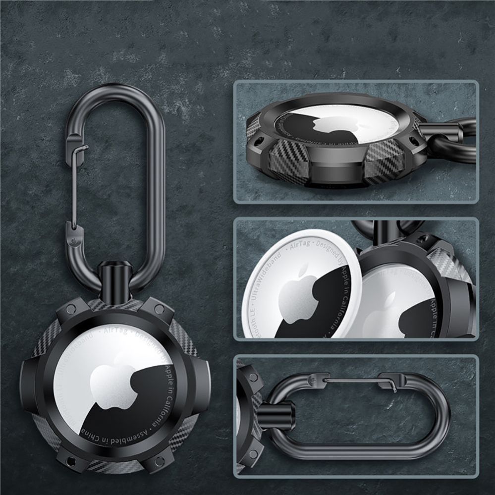 The matte black casing with carbon fiber accents and a functional carabiner create an extremely practical keychain that you can attach to your keys, suitcase or other items that are important to you.