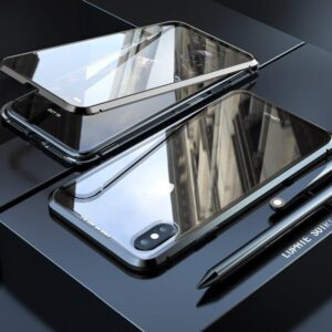 - Metal 360 protection phone case with magnetic closure and built-in glass in front and back.