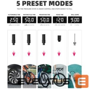 - It has 5 different inflation options . It allows you to fill a bicycle, motorcycle, ball or even a car with air.