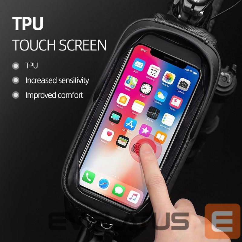 The transparent phone compartment not only protects your phone from rain, but also allows you to easily use applications, maps or track driving statistics without having to remove your device.