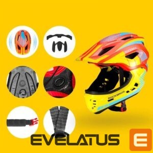 The Rockbros TT-32SOYB-S children’s bicycle helmet is the perfect solution for little cyclists. This model provides comprehensive head protection, minimizing the risk of injury in the event of an accident. The integrated design with a detachable jaw offers flexibility of use – you can use full face protection or enjoy more freedom. The helmet’s lightness, adjustable fasteners and stylish appearance make it both practical and attractive for children.