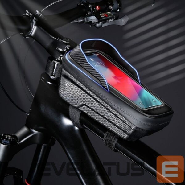V2 is a practical bike bag from Tech-Protect mounted on the bike frame. The case is perfect as a storage for small items such as a power bank, wallet or keys. The bag is made of dust- and waterproof impact-resistant PC material, with a touch-sensitive, transparent window on the front (163x91mm). This solution allows you to use your phone while riding, without having to take the device out of the case.