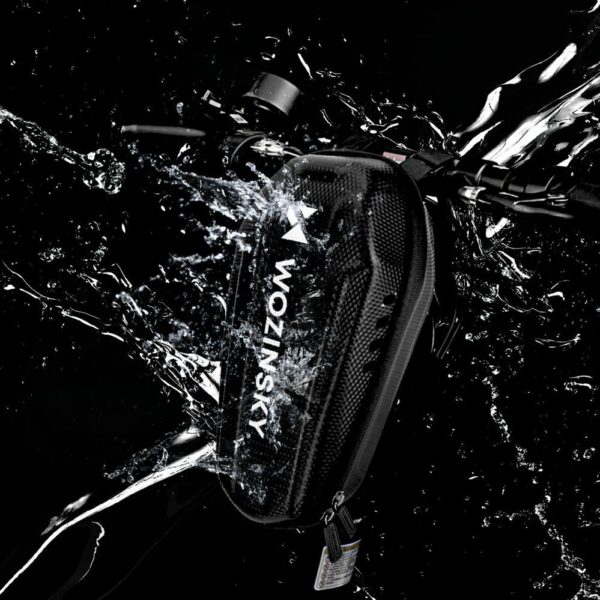 The Wozinsky WSB4BK scooter handlebar bag is made of a durable, reinforced material – EVA – which increases resistance to various types of damage. Thanks to the reinforced structure, your items transported inside will not be damaged . The EVA material is also fully resistant to water, moisture, and dust . So you can take the bag with you even in inclement weather or when night falls. The front of the bag features a large reflective logo, and the all-round zipper is waterproof.