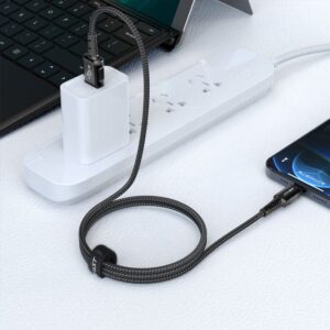 Acefast USB – Lightning cable for charging and data transfer. It is designed for Apple devices with a Lightning connector. It has a length of 120 cm and is adapted to work with a current of up to 2.4 A. It has the MFI (Maide For iPhone) certificate, thanks to which the phone will not display a message about a non-original accessory. The cable is braided along its entire length with nylon. The plugs have an aluminum housing. The cable ends are protected against damage at the most frequent bending points.