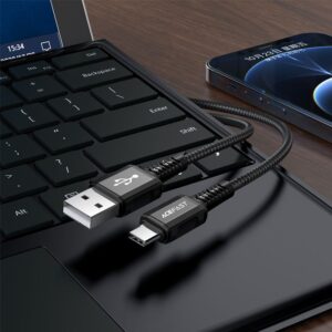 USB – USB Type C cable for charging and data transfer by Acefast. It is designed for devices with a USB Type C connector. It has a length of 120 cm and is adapted to work with a current of up to 3 A. It is compatible with Quick Charge fast charging. The cable is braided along its entire length with nylon. The plugs have an aluminum housing. The cable ends are protected against damage at the most frequent bending points.